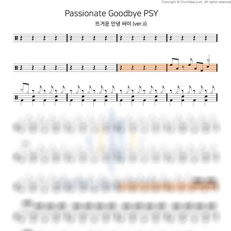 듣자마자 좋은노래! 추억의 노래 싸이의 뜨거운 안녕 피쳐링 성시경(성발라) 입니다. 개인적으로 너무 좋아하는 곡입니다.드럼을 직접 작곡하여 그렸습니다. 버젼은 원곡 편곡 두가지 버젼 모두 수록해드렸으니 마음껏 구매해서 사용하세요. 감사합니다.